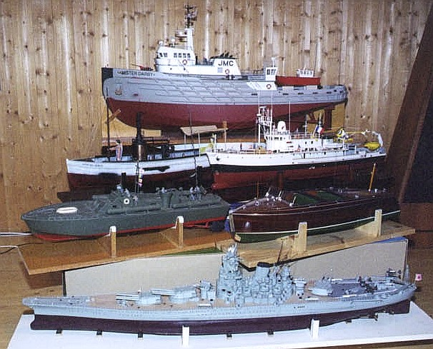 ModellvalVid våra tävlingar pratas det en del om att köra mer eller mindre bra. Det pratas mindre om hur man före körningen förbereder sin modell för ett bra resultat. Jag menar då inte att se till att batterierna är laddade, utan hur vi väljer, utrustar och trimmar in våra modeller. Under mina 11 år som aktiv har jag tävlat med 7 olika modeller. De spänner från 25 till 131 cm i längd, 280 g till 32 Kg i vikt, en till fyra propellrar, och så vidare. De har väldigt olika egenskaper, och bjuder skepparen på olika svårigheter. Under åren har jag jobbat en del med att få dem att uppträda så bra som möjligt i manöverbanan.Flottan bakom de erfarenheter artikeln beskriver, framifrån och bakåt: Yamato, PT 109 och Chris Craft Barrelaback, African Queen och Calypso, och längst bak Mister Darby med Darby Jr på akterdäck.
