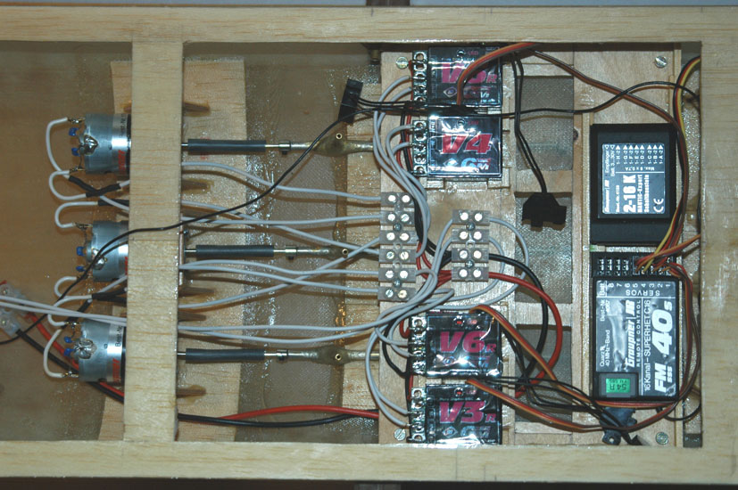 Andra versionen, som fungerade mycket bättre. Här syns också manövreringen av de tre rodren.