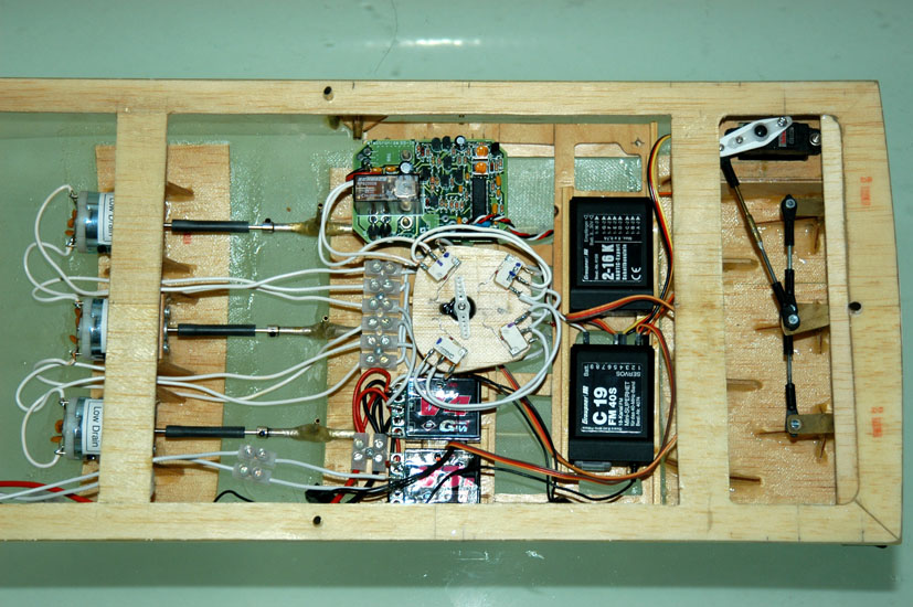 Första versionen av motor- och radioinstallation. Motorerna och fartreglagen fick bakläxa.