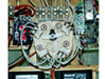 Närbild på reverseringsfunktionen. Till höger är det avskalade fartreglaget för yttermotorerna.