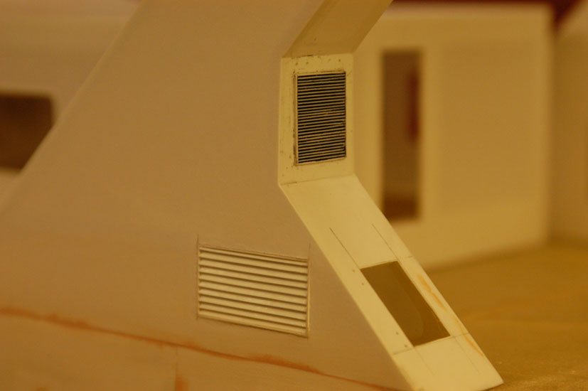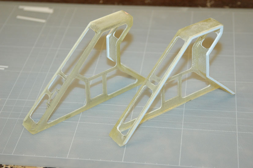 Avbärarlisterna längs sidorna tillverkades genom att limma ihop styrenprofiler och slipa till rätt tvärsnitt, varefter de limmades på plats (bild 9).