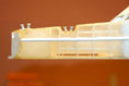 Nu var turen kommen till övre däck och jag började framifrån, med kommandobryggan. Jag hade gjort ett laminat för hela delen med kommandobrygga och besättningsutrymmen, men den höll inte formen speciellt bra i de släta partierna och jag använde därför bara den främsta delen av laminatet. Jag gjorde också en dentagbar balja i tunn styren som senare ska inrymma kommandobryggans inredning (bild 12).