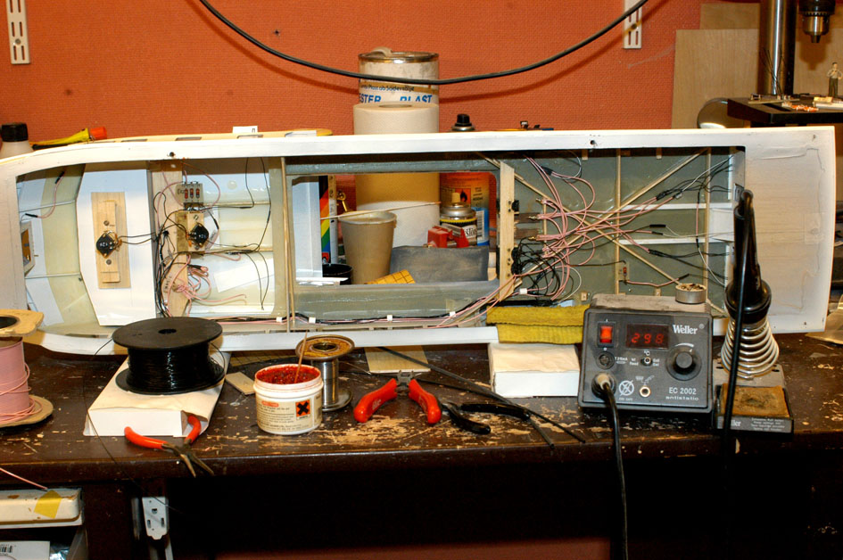 Nu var det dags för ledningsdragning och manövreringskretsar för de radiokontrollerade funktionerna, som (utöver manövrering, bogvisir och landgång) är;