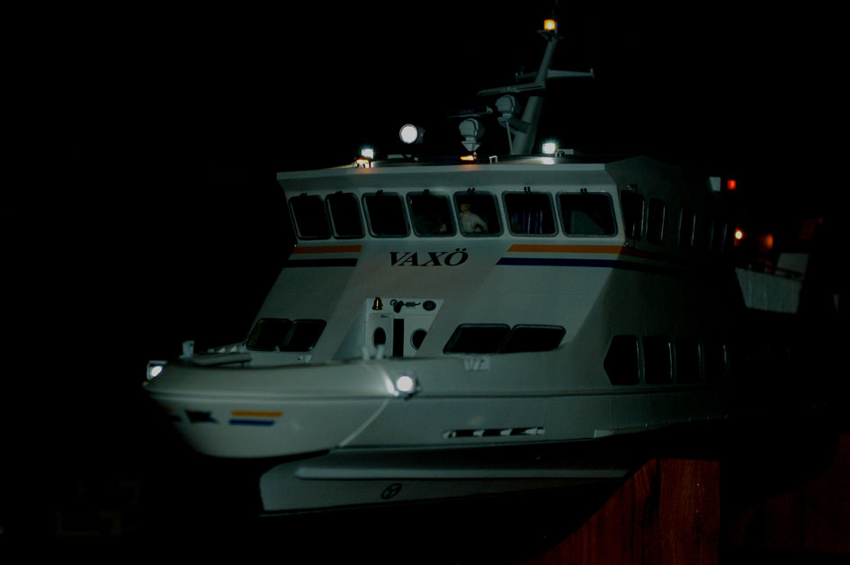 El- och radiosystemen klara. Nu var det bara att släcka ner i arbetsrummet och leka med alla ljusfunktionerna (bild 13 och 14).