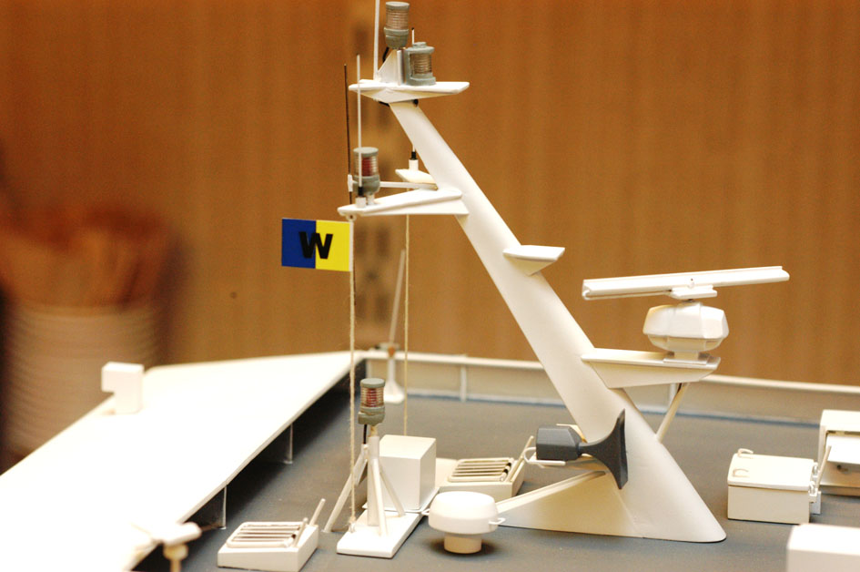 Turordningen på det som återstod var i stort sett given. Kommandobryggan måste göras innan jag kunde montera motorerna för radarantennerna och de måste på plats innan jag kunde göra eldragningen. Och eldragningen ville jag ha klar innan jag gjorde fönsterspolningsutrustningen och tilläggningslinorna eftersom det skulle vara svårare att lägga överbyggnaden på sidan när de var monterade. Således, först till kommandobryggan.