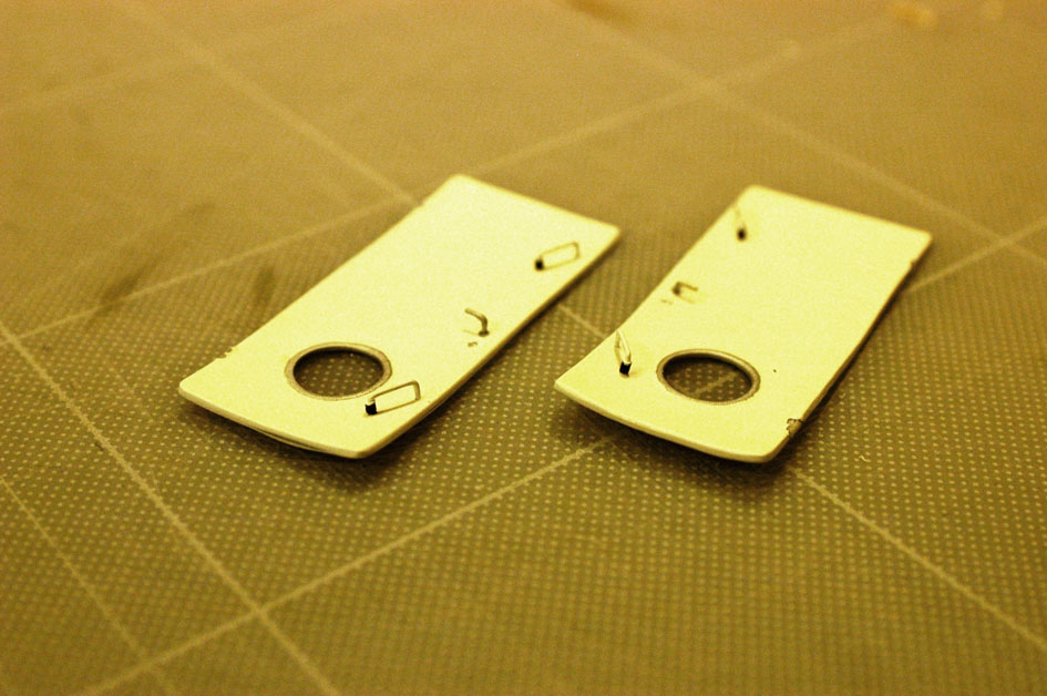 Innan jag betraktade fartygsbygget som avslutat gav jag mig in på den första ”reparationen”. Några av luckorna, och allra värst dörrarna till akterdäck, hade slagit sig (bild 24 och 25). Såvitt jag kan förstå var det klarlacken som dragit ihop sig och böjt plasten. Vilka luckor/dörrar som drabbats och hur mycket beror troligen på hur tjockt lager lack jag lagt och om jag gjort det på båda sidor eller inte. Foton tagna under bygget visar att luckorna hållit formen en eller ett par veckor efter att de lackats, för att sedan böja sig mer och mer under ett par månader varefter de stannat i sin nya form. Antar att det beror på härdningsprocessen i lacken som tydligen tar ett par månader innan den är helt avslutad. De drabbade luckorna kunde jag rikta genom att spänna dem plana och värma dem i ugnen. 15 minuter i 50 grader visade sig vara tillräckligt för att rikta plasten utan att påverka färg och lack. Dörrarna till akterdäck var så böjda att jag gjorde nya. De gick i och för sig bra att rikta, men lacken klarade inte så stor omformning utan fick ett stort antal sprickor. Oavsett om jag riktade eller gjorde nytt fick jag ”bända loss” luckan/dörren från de ca 2mm långa stumpar av 1mm mässingsrör som utgör den rörliga delen av gångjärnen och sedan limma dit dem igen. Ett ”spännande” moment, speciellt att med en skalpell bända/skära loss dem. Att istället ta loss hela gångjärnen, med 0,5mm mässingstråd som går genom väggen och är limmad på baksidan är inte ett realistiskt alternativ. Hur som, inför eventuella framtida liknande åtgärder är det bra att veta att det går och att det ser bra ut efteråt.